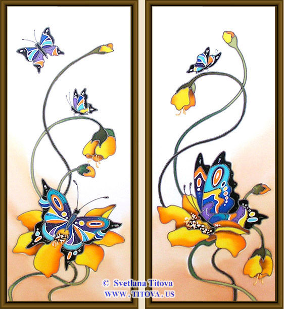 Butterflies. Silk Painting. Size 18"h x 8"w, 18"h x 8"